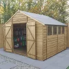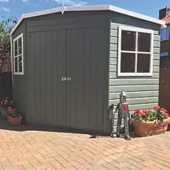A great way of adding a large, versatile working area to an outdoor space. Offers a wide range of solutions from simple garden storage to a larger workshop space. The solid timber floor allows for the storage of heavier items. Features a wide front which gives plenty of space for storage or for lining the sides and back with shelves and workbenches whilst still having enough space left to move around. Design features small sections, making it easier to handle and easy to assemble. Access in and out of the shed is maximised with large double doors that are braced with double ‘Z’ framing for added strength and feature hidden hinges for increased security. The hasp and plate door fastening can be secured with a padlock (not included). As well as letting in lots of natural light, the 8 fixed windows are glazed with shatterproof PET glazing, which will not become yellow or brittle over time. This flexible shed is made up of modular sections where same size panels are interchangeable, this allows positioning of windows on either side of the shed. Can be built with 8 windows down one side or 4 windows each. Manufactured in the UK and supplied with all fixtures, fittings and felt needed to build.