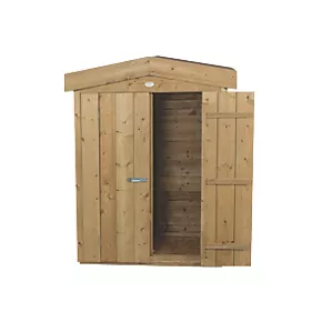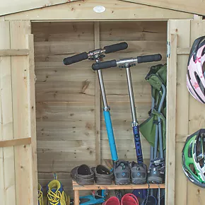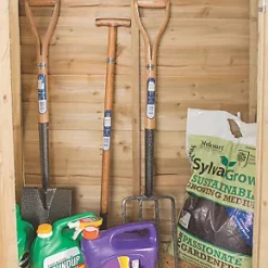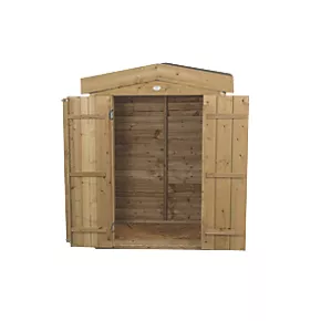 Ideal for outdoor areas where space is limited. Traditional design with overlap pressure-treated timber boards and shiplap tongue and groove front panels with double doors. The felted roof keeps the unit weatherproof and the front is finished with smooth-planed barge boards. Hidden door hinges also provide additional security.