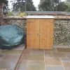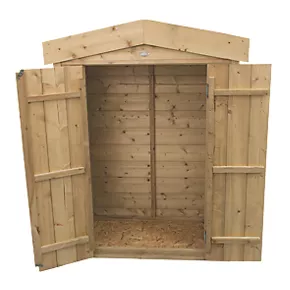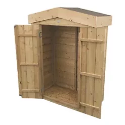 Mid-sized garden store made with smooth-planed, pressure treated boards and includes double doors. The floor is mounted on pressure-treated bearers that raise the unit off the ground to keep it dry and the roof is finished with a high quality green mineral felt.