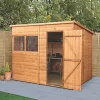 An excellent option for gardens where space is limited. Traditional apex roof, smooth-planed finial and decorative barge boards. High apex for plenty of headroom inside. Design features small sections, making it easier to handle and allows quick and easy assembly. The door is braced with strong double ‘Z’ framing, has secure hidden hinges and is fitted with a hasp and staple latch that can be used with a padlock. The door can be hinged either side of the opening to suit the garden. Pressure-treated solid timber floor allows for the storage of heavier items like lawnmowers or bags of compost. The lack of windows help to keep belongings hidden. Constructed using square-cut boards that overlap to allow natural movement of the timber in changing weather conditions and aid water run-off. The roof is made from hardwearing sheet material, finished with black sand felt. Manufactured in the UK and supplied with all fixtures, fittings and felt needed to build.