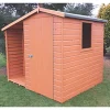 An excellent option for gardens where space is limited. Traditional apex roof, smooth-planed finial and decorative barge boards. High apex for plenty of headroom inside. Design features small sections, making it easier to handle and allows quick and easy assembly. The door is braced with strong double ‘Z’ framing, has secure hidden hinges and is fitted with a hasp and staple latch that can be used with a padlock. The door can be hinged either side of the opening to suit the garden. Pressure-treated solid timber floor allows for the storage of heavier items like lawnmowers or bags of compost. The lack of windows help to keep belongings hidden. Constructed using square-cut boards that overlap to allow natural movement of the timber in changing weather conditions and aid water run-off. The roof is made from hardwearing sheet material, finished with black sand felt. Manufactured in the UK and supplied with all fixtures, fittings and felt needed to build.