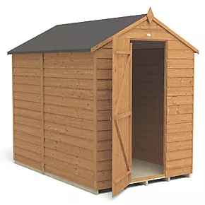 An excellent option for gardens where space is limited. Traditional apex roof, smooth-planed finial and decorative barge boards. High apex for plenty of headroom inside. Design features small sections, making it easier to handle and allows quick and easy assembly. The door is braced with strong double ‘Z’ framing, has secure hidden hinges and is fitted with a hasp and staple latch that can be used with a padlock. The door can be hinged either side of the opening to suit the garden. Pressure-treated solid timber floor allows for the storage of heavier items like lawnmowers or bags of compost. The lack of windows help to keep belongings hidden. Constructed using square-cut boards that overlap to allow natural movement of the timber in changing weather conditions and aid water run-off. The roof is made from hardwearing sheet material, finished with black sand felt. Manufactured in the UK and supplied with all fixtures, fittings and felt needed to build.