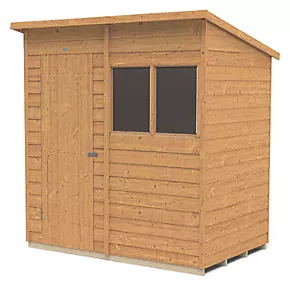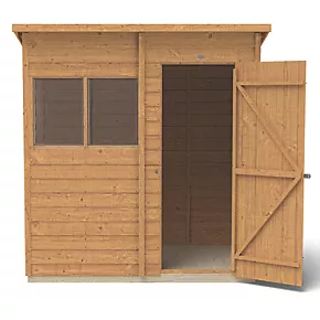 A great storage solution for all types of gardening equipment, from tools to lawnmowers. Pent roof and windows allow plenty of room and light. Roof style is perfect for situating against a back wall or fence. Design features small sections, making it easier to handle and quick and easy to assemble. Overlapped, straight-cut boards allowing for natural movement of the timber so it can adapt to the changing weather conditions and ensure rainwater run-off. Pressure-treated solid timber floor allows for the storage of heavier items like lawnmowers or bags of compost. The shed door is braced with double ‘Z’ framing for rigidity and is hung with secure hidden hinges. Fitted with a hasp and staple latch that can be padlocked (padlock not included). The 2 fixed windows are made from shatterproof PET glazing, which will not yellow or brittle over time. The door can also be hinged either side of the opening to suit the garden. The dip treatment that has been applied at the factory protects the timber (annual treatment required). Manufactured in the UK and supplied with felt and all fixtures and fittings needed to build.