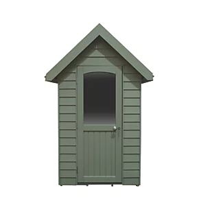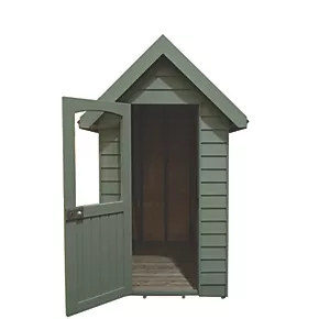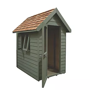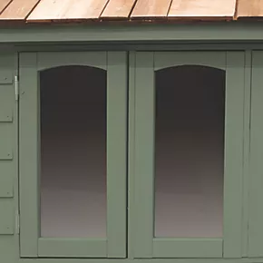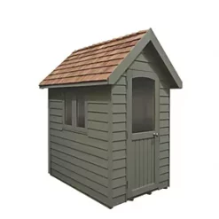 An exceptionally high quality workspace ideal for storing tools, potting seeds or for DIY. Provides a practical space as well as making a beautiful garden feature. Hand-made to order and assembled on-site from the finest materials. Kiln-dried, smooth-planed redwood timber boards are mounted to a substantial framework, in an overlap construction (with 20mm wall thickness at the overlaps), to give a traditional and attractive featheredge appearance. The steeply pitched roof gives the building a distinct style and offers plenty of headroom. Shelves can be readily inserted at the back of the shed, making full use of the roof space as a place for storage. The floor and roof use interlocking, smooth-planed and pressure-treated boards and the floor is mounted on pressure-treated bearers to protect it from ground contact. The roof is finished with high quality Canadian red cedar shingles that over time will develop to a subtle grey. The 2 opening windows are glazed with 4mm toughened glass.