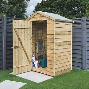 Ideal for when space is at a premium, for safe and secure storage of garden tools and supplies. Apex roof with plenty of headroom, includes protective mineral roofing felt. Pressure-treated against rot for longevity.