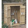 Ideal for storing garden tools and supplies. Features lifting lid with stay for easy access. Solid board floor and roof. Dipped honey brown finish.