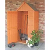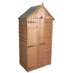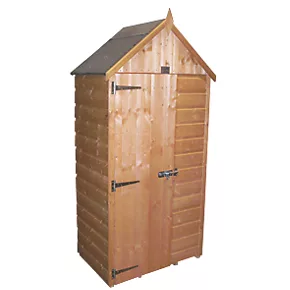 Dip-treated timber with shiplap cladding and apex roof. Ideal for small spaces. Supplied with hasp and staple locking system. 1 padlock point.