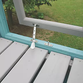 Ideal for use as a potting shed, workshop, hobby room or summerhouse. Features 6 fixed windows to the front and an opening window in each end. Also fitted with a full length workbench and air vents.