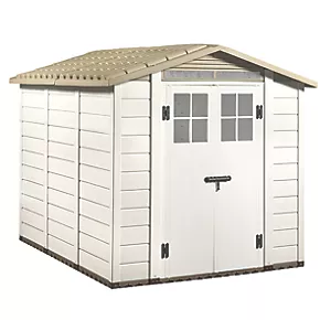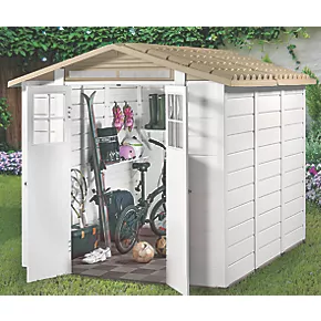 Italian-designed, easy-to-assemble waterproof garden store. Features box section PVC walls and apex roof.